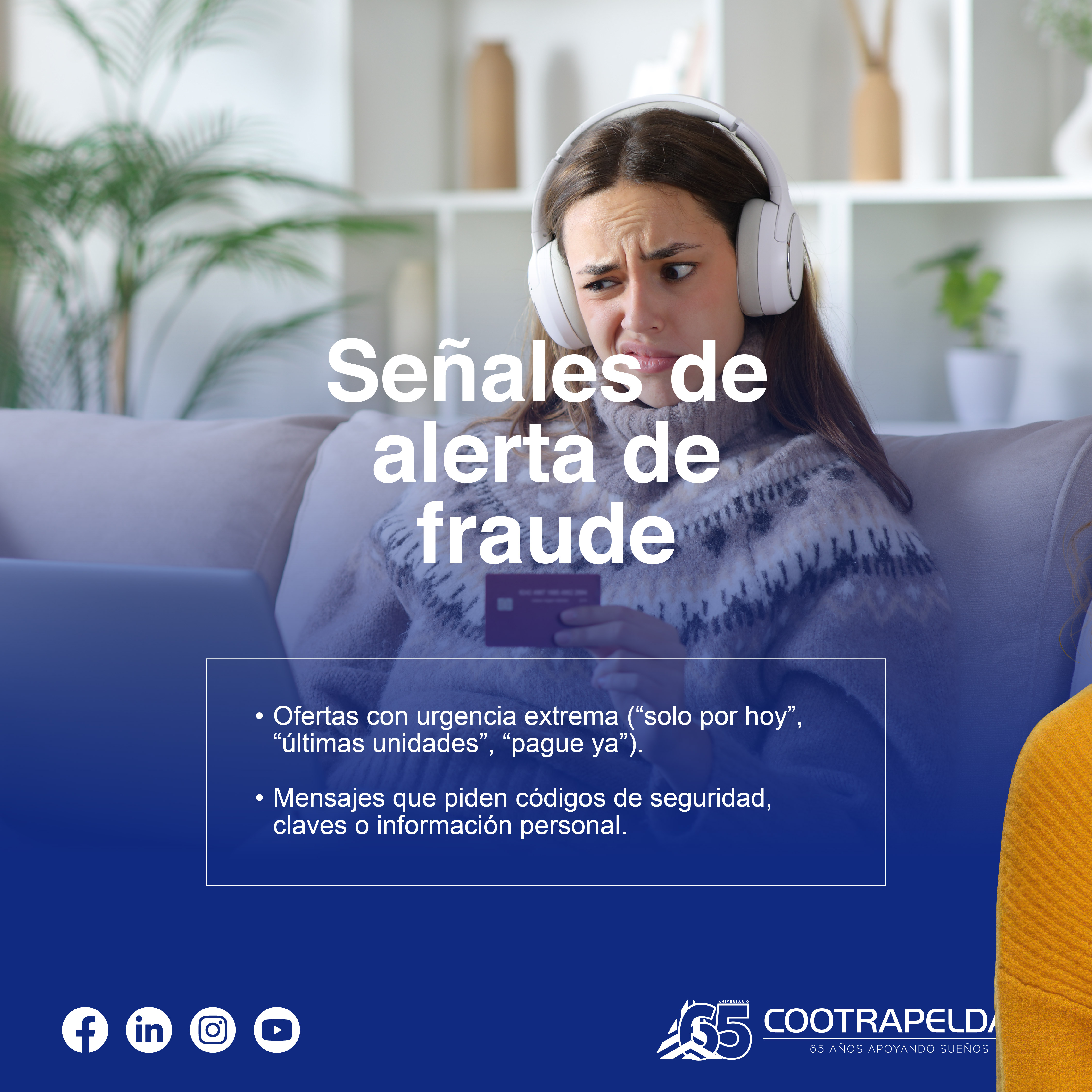 Protege tu dinero y tu información: compra solo en sitios oficiales, evita enlaces sospechosos, no compartas datos personales ni financieros y mantente alerta ante ofertas con urgencia extrema.